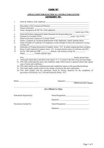 Application For Renewal Electrical Business License