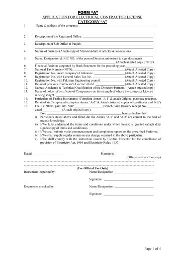 APPLICATION FOR ELECTRICAL CONTRACTOR LICENSE