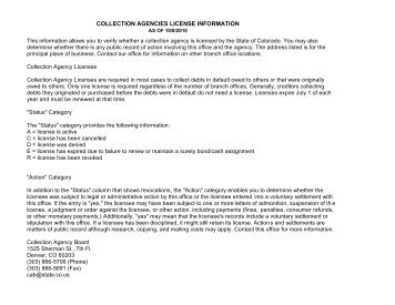 Colorado General Abatement Contractors as of 7/21/2017 CAT Environmental Services LLC 6321 Washington St,. #D Denver CO 80216 (303) 964-1192 06/16/201821114 Certified Insulators, Inc.-Englewood 4050 South Federal Blvd. Englewood CO 80110 (303) 308-0603 03/06/2018121 ... Retrieve Content