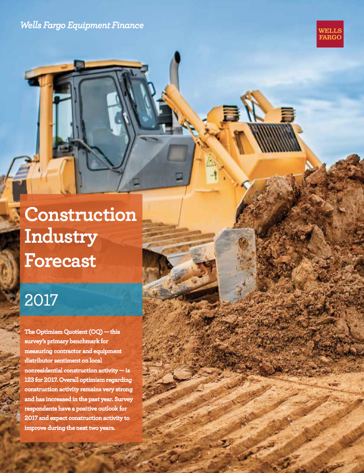 Wells Fargo Equipment Finance Construction Industry Forecast 2018 — a year of continued optimism The Optimism Quotient (OQ) — this survey’s primary benchmark for measuring contractor and equipment distributor sentiment on local nonresidential construction activity — for 2018 is 133, a 10-point increase over 2017. The increase in ... Read Document